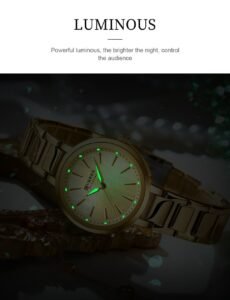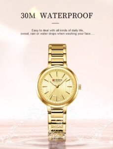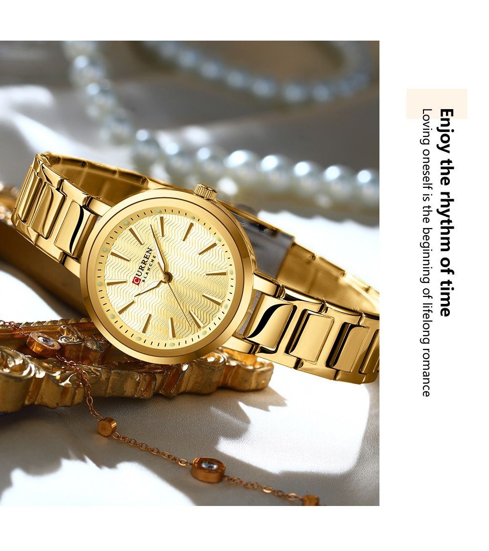 ساعة CURRÉN نسائية ذهبية بتصميم راقٍ، مضيئة في الظلام، مقاومة للماء 3ATM، مثالية للاستخدام اليومي والمناسبات.