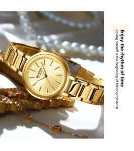 ساعة CURRÉN النسائية الفاخرة تجمع بين الأناقة الكلاسيكية والتصميم العصري، مع لمسة ذهبية جذابة تناسب جميع الإطلالات اليومية والرسمية.